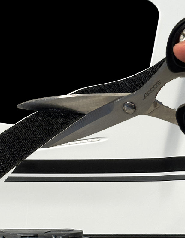 Cut the velcro to fit the size of the glass. Corners can either be cut straight or can be trimmed according to the curve of the window for a more appealing installation.