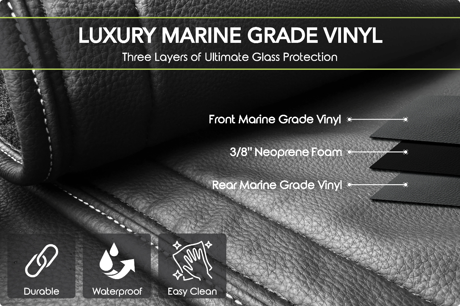 We use an exceptional marine-grade fabric that holds up to everything under the sun. Engineered to withstand rain or shine for years of exposure without fading. The luxury fabric we utilize cleans easily with mild soap and water ensuring a long lasting durability. Internally, RV Shady is lined up with an ultra-soft 3/8" neoprene foam, offering plush finish which provides an additional layer of protection. Ultimately creating an effective protection that safeguards the front cap glass.