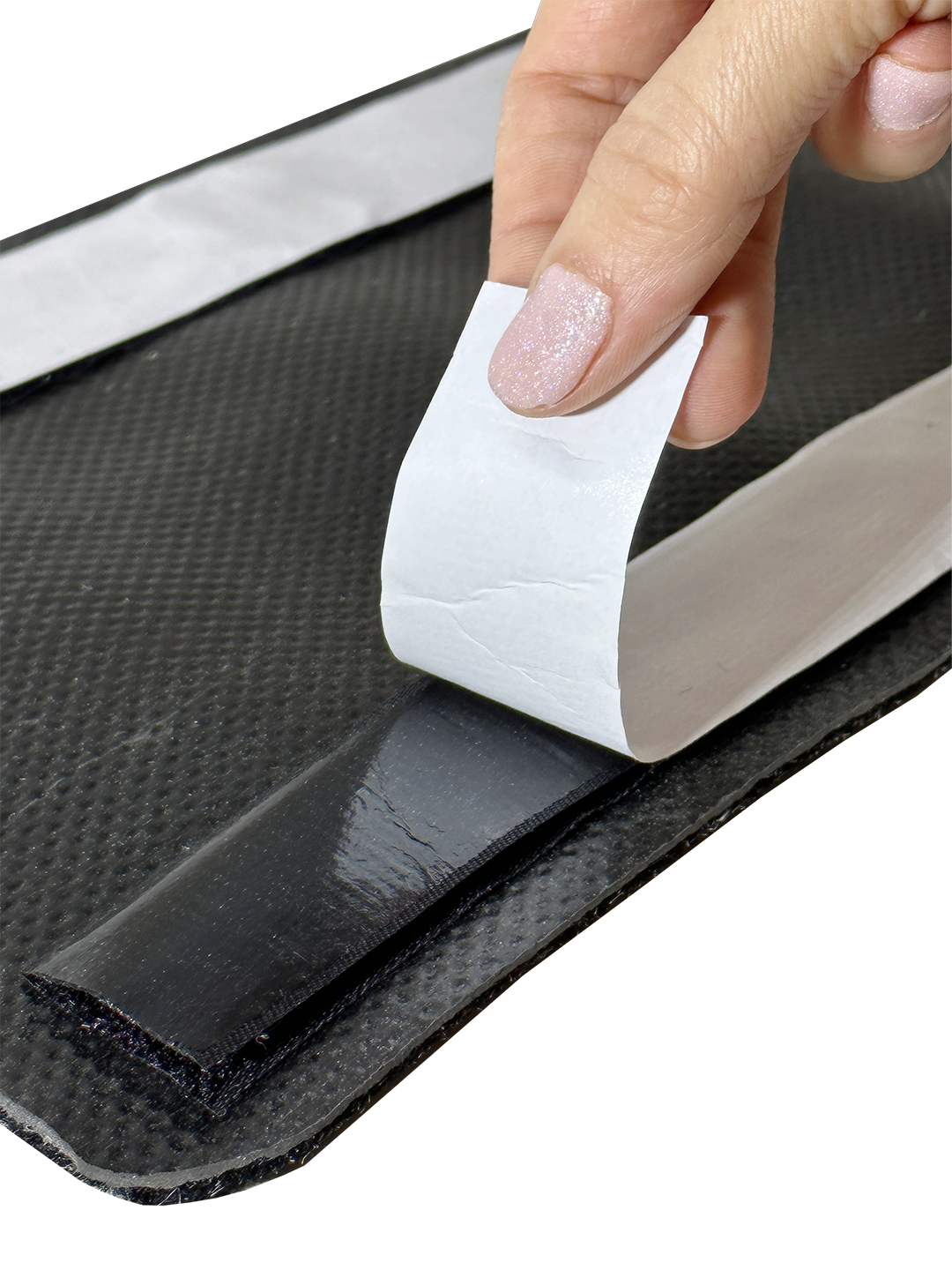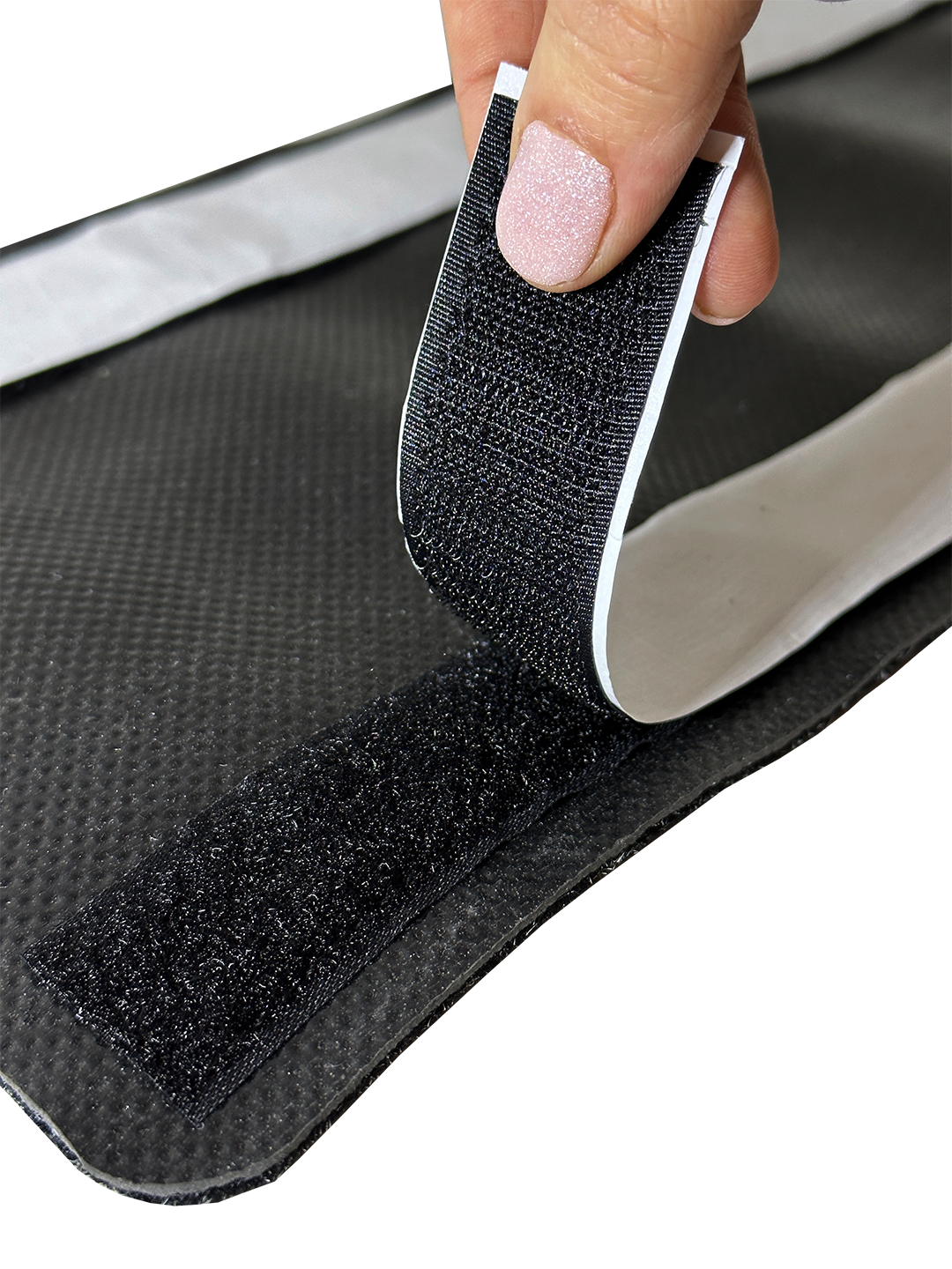 Remove velcro strip film.