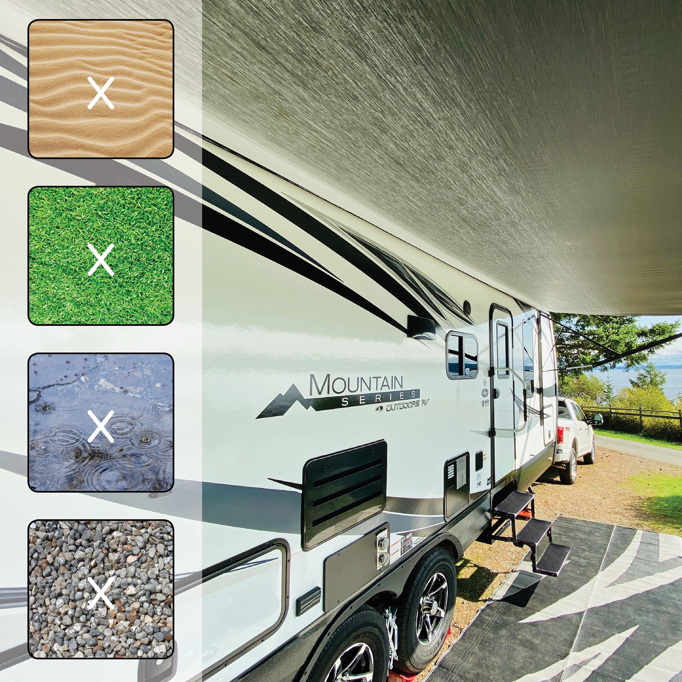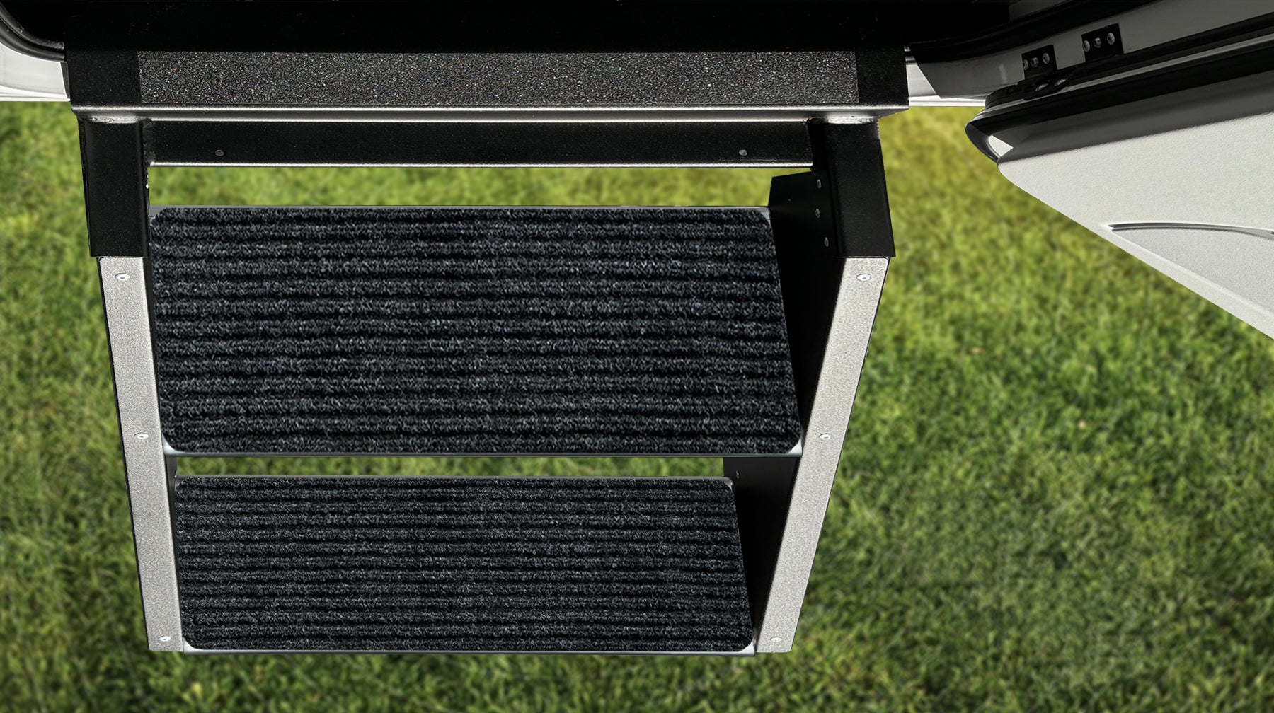 The rigid rug texture is designed to trap dirt while protecting the step from any scratches. Unlike other rugs, RUGUP is the only product that actually covers the entire step surface ensuring a safe step up and down for you and your pets from your RV.