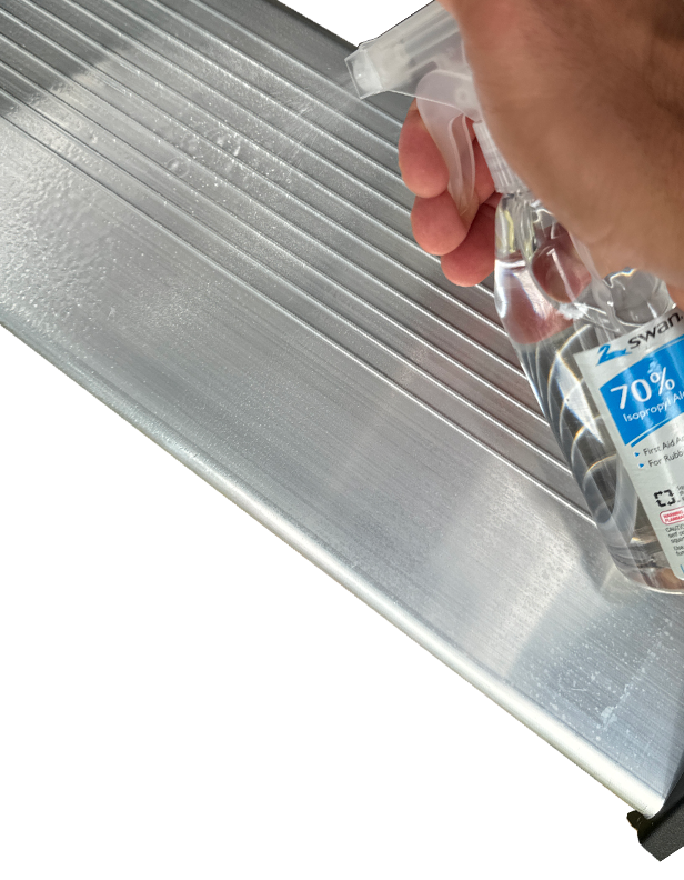 Supplies: Dish Soap, Hard Bristles Brush, Water, 70% Alcohol and Cotton Cloth.