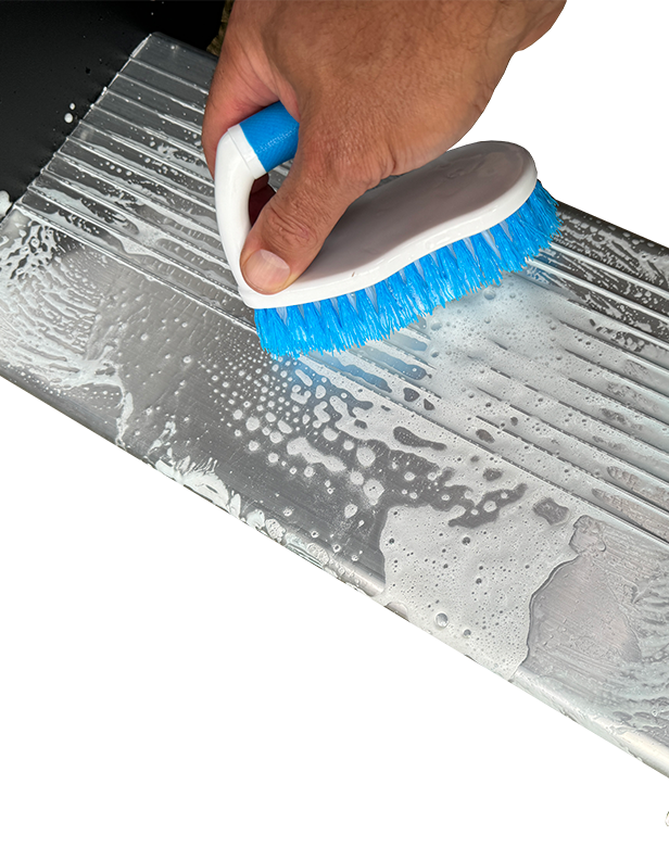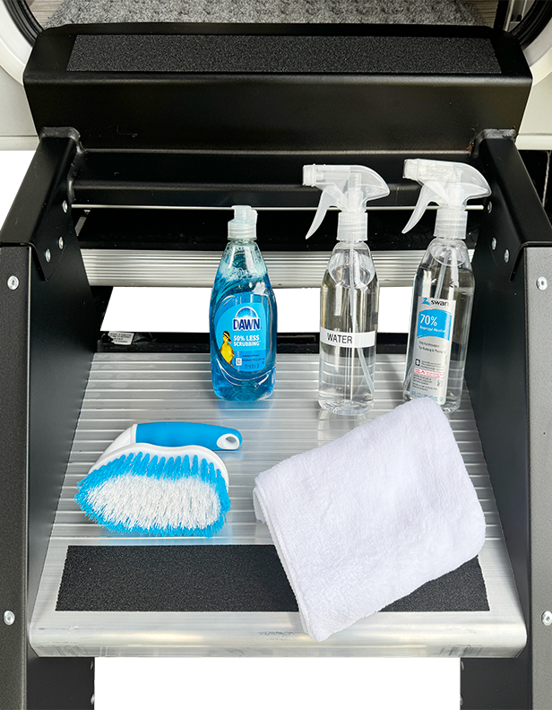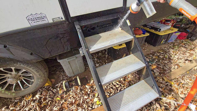 Unlike traditional rugs that turn into sponges when wet and can cause a mess when folding the steps inside the RV, Trailershere's RV Deck is waterproof and turns a very unsafe aluminum steps into a secure surface. RV Deck is designed specifically for the harsh environments RVers often encounter. The unique pattern naturally drains water off the mat and repels dirt, while maintaining the entry to the RV safe and looking great.